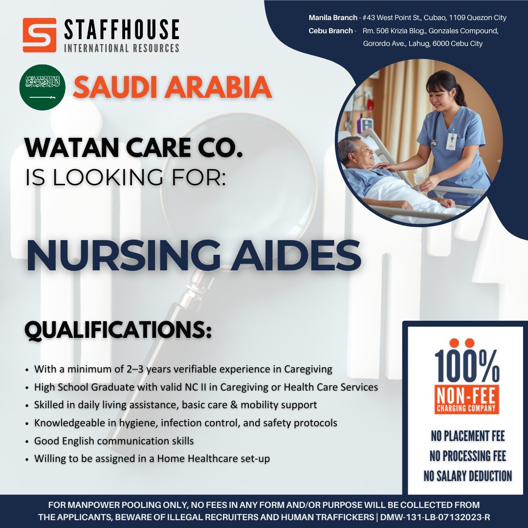 Now Hiring: Nursing Aide for Saudi Arabia – Watan Care Co.