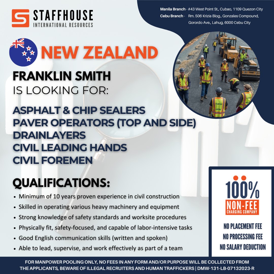 Now Hiring: Civil Workers for New Zealand | Franklin Smith